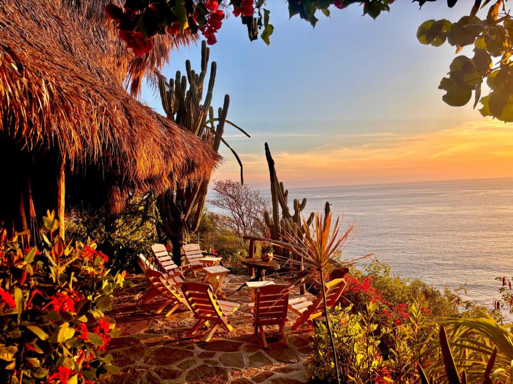 Ubicado a 43 km del aeropuerto de Huatulco y a 74 km del aeropuerto de Puerto Escondido, este eco rancho diseñado con amor y con vista al Océano Pacífico cuenta con 9 habitaciones diferentes para conectarse con la naturaleza y el sonido del océano, una hermosa y acogedora shala de yoga, restaurante y mucho espacio para moverse en la naturaleza. La tranquilidad de este lugar abre los sentidos al aire puro del océano, la encantadora naturaleza, las delicias culinarias y el yoga.